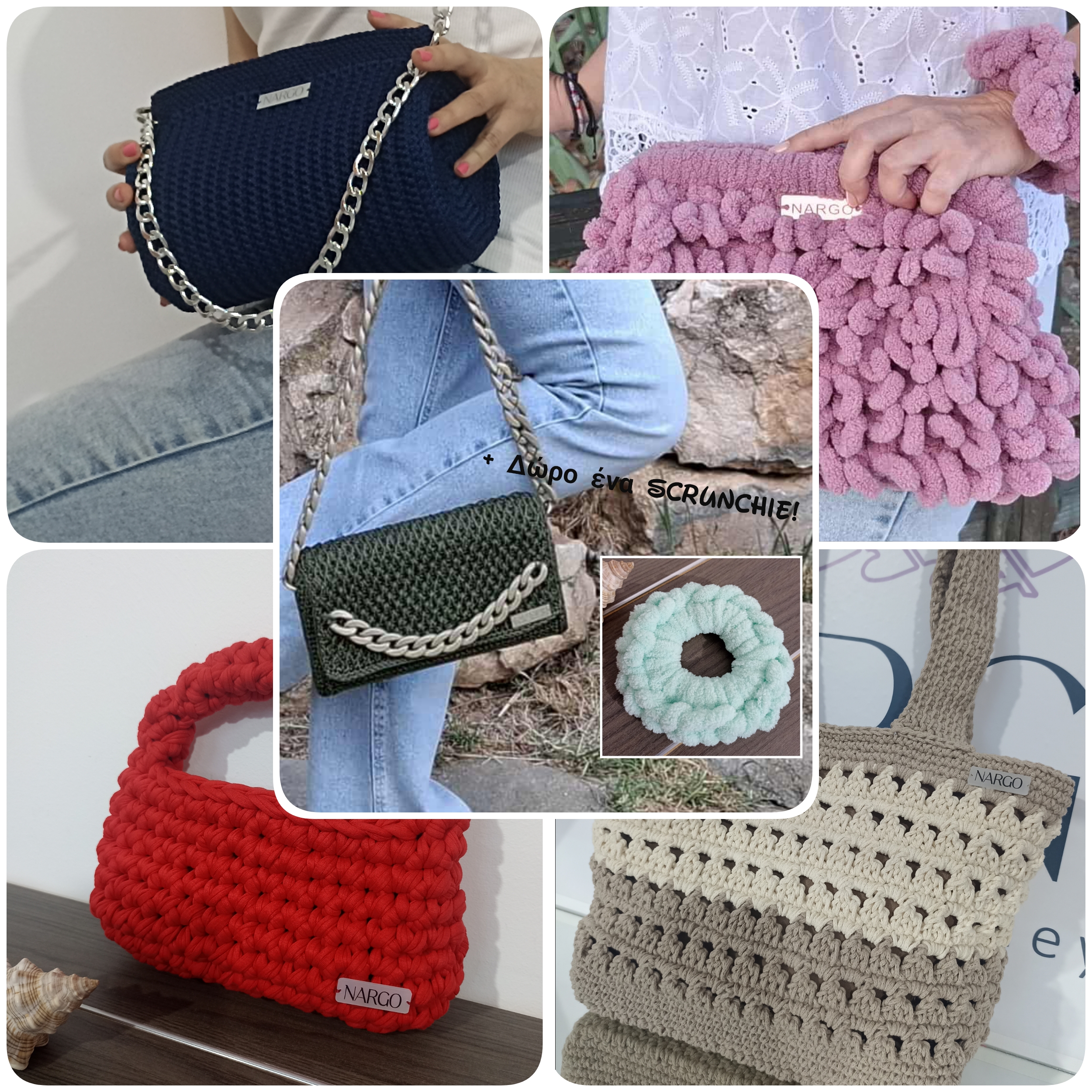 Στη Nargó θα βρείτε μοναδικές χειροποίητες πλεκτές τσάντες , δερμάτινες (οικολογικό δέρμα) και υφασμάτινες.