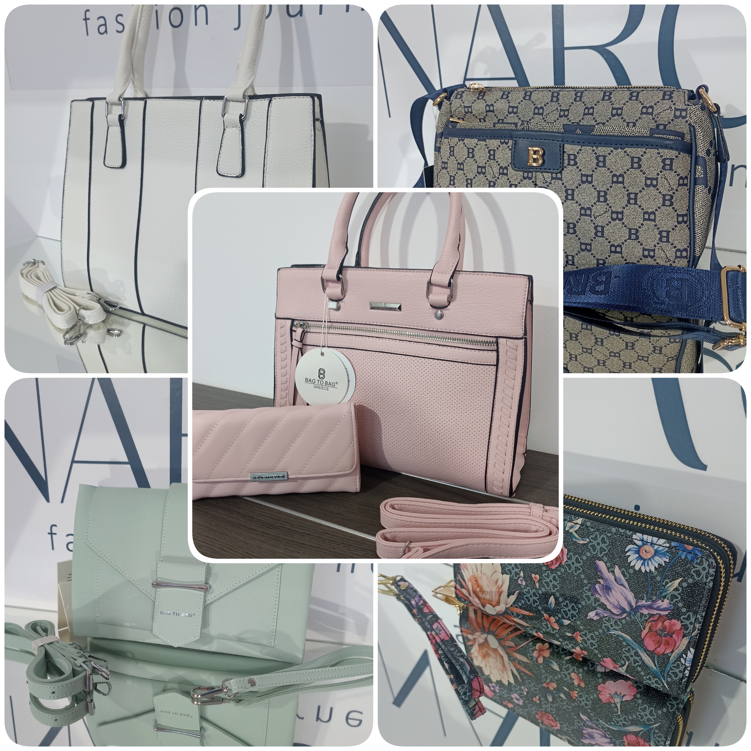 Επιλεγμένες έτοιμες τσάντες χειρός, ώμου, χιαστί, μέσης, πλάτης καθώς και πορτοφόλια.