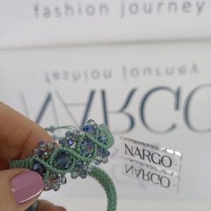Χειροποίητο βραχιόλι μακραμέ σε απόχρωση του πράσινου με πετρούλες. Κατασκευασμένο με την τεχνική μακραμέ (macrame).