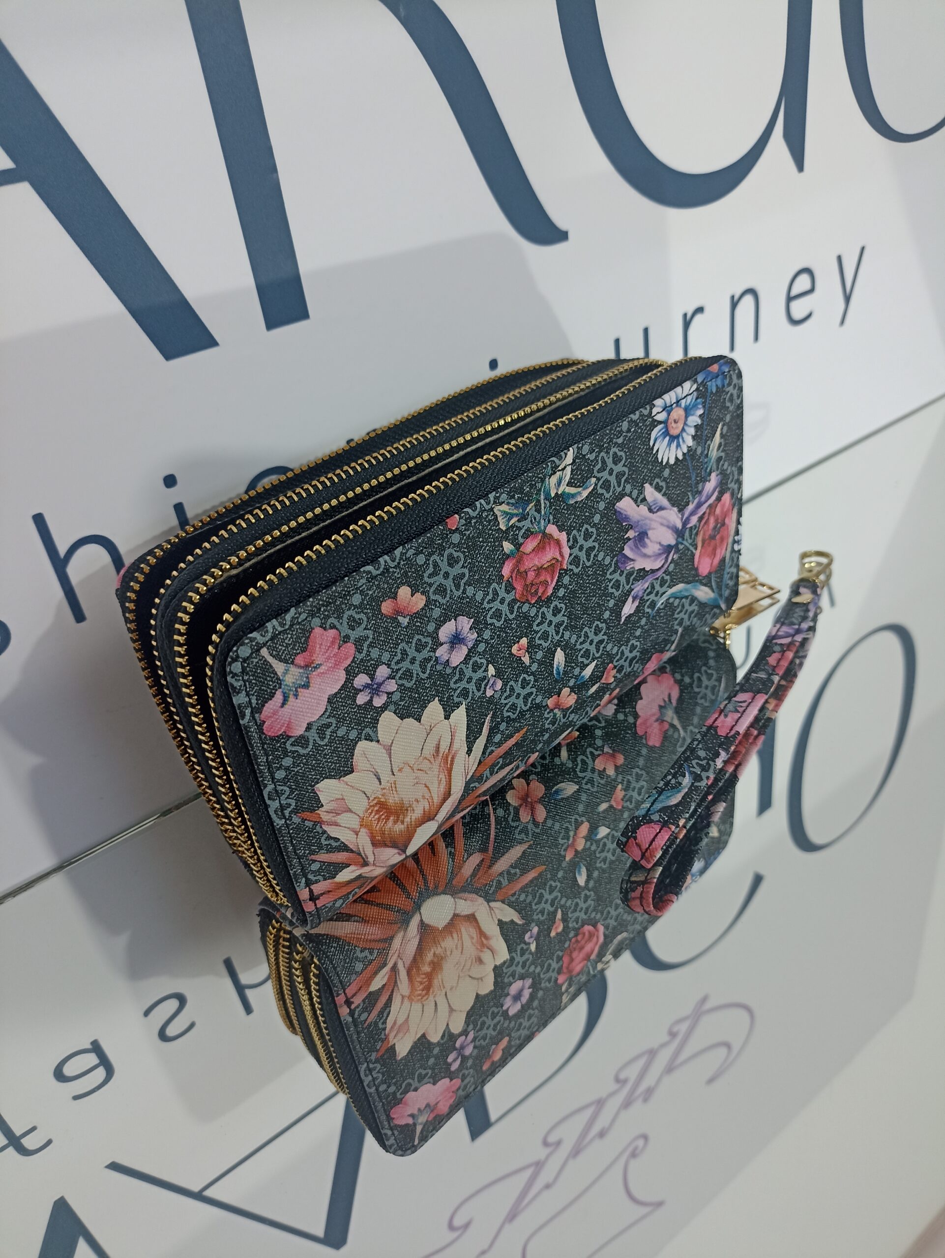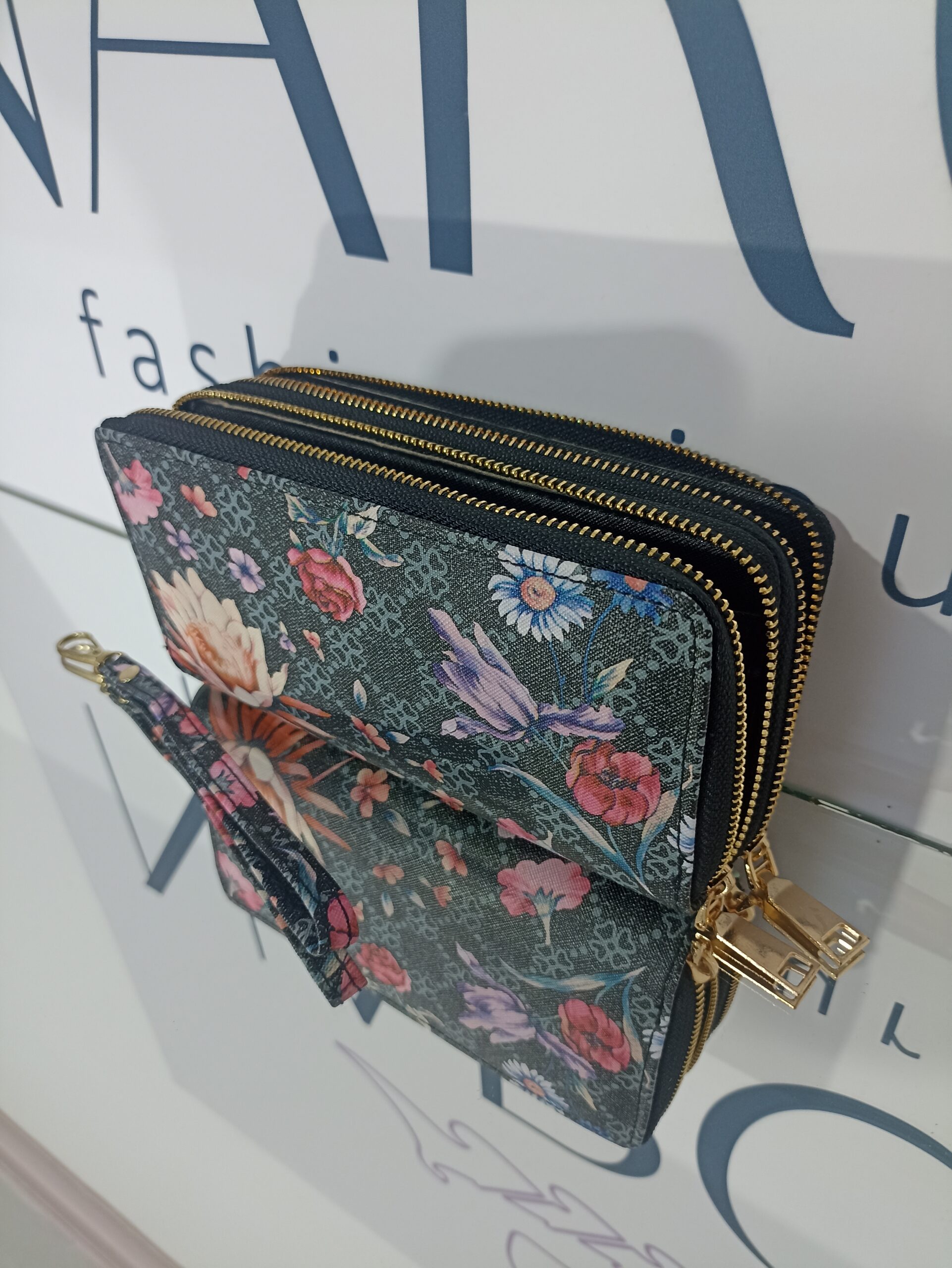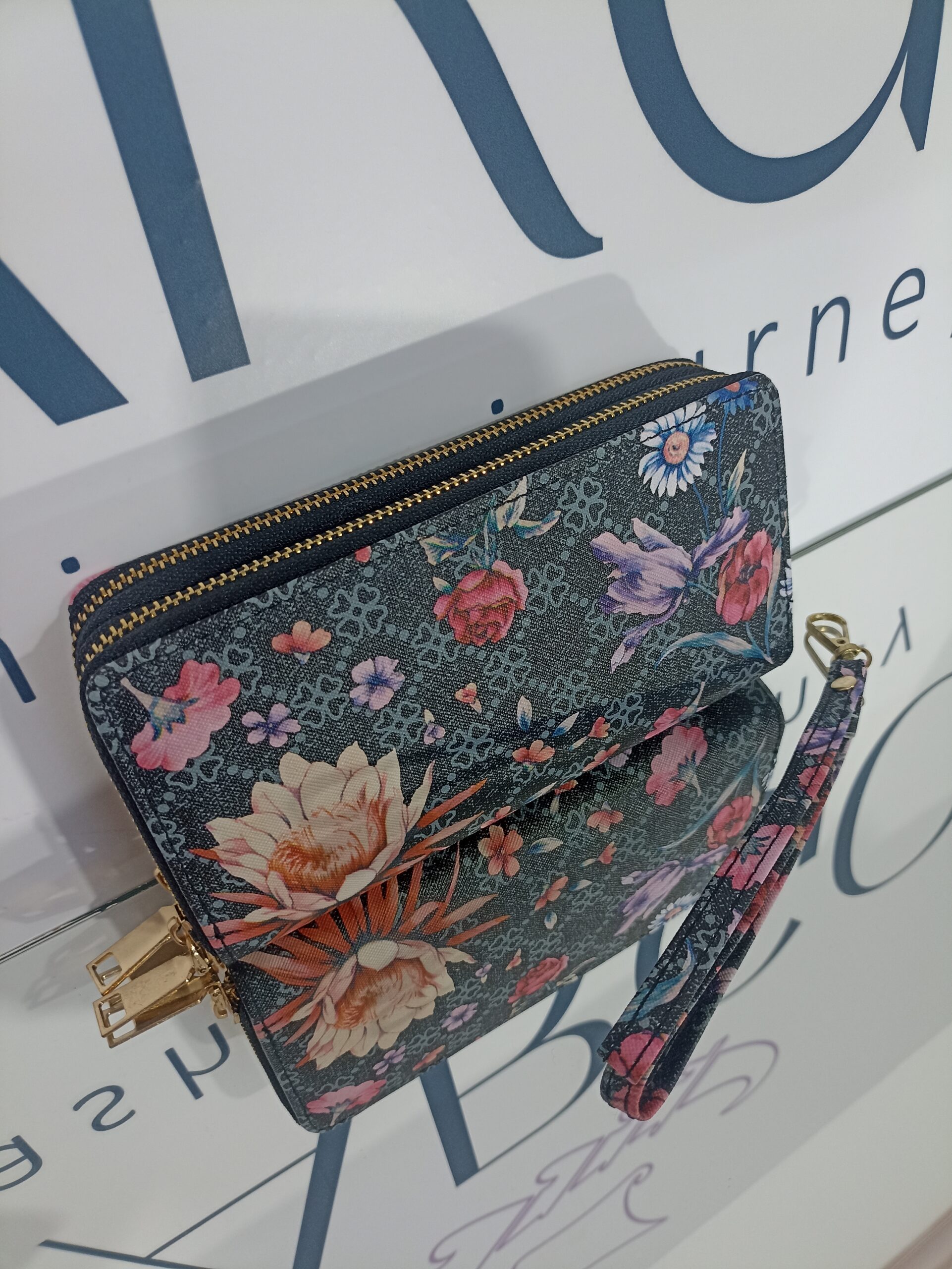 Γυναικείο πορτοφόλι floral με διπλό φερμουάρ.