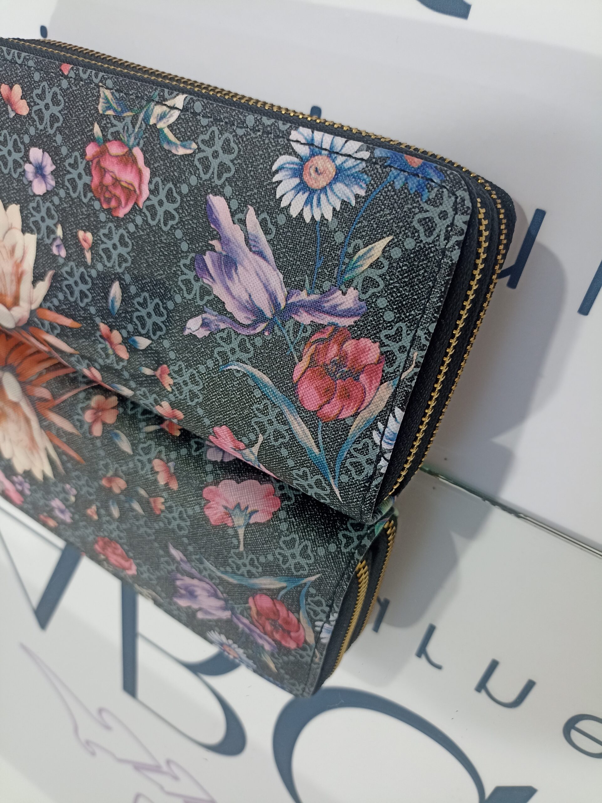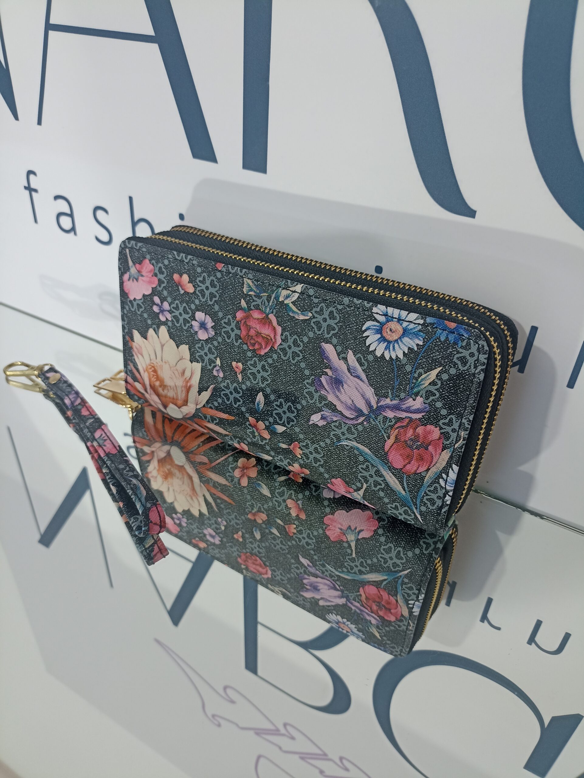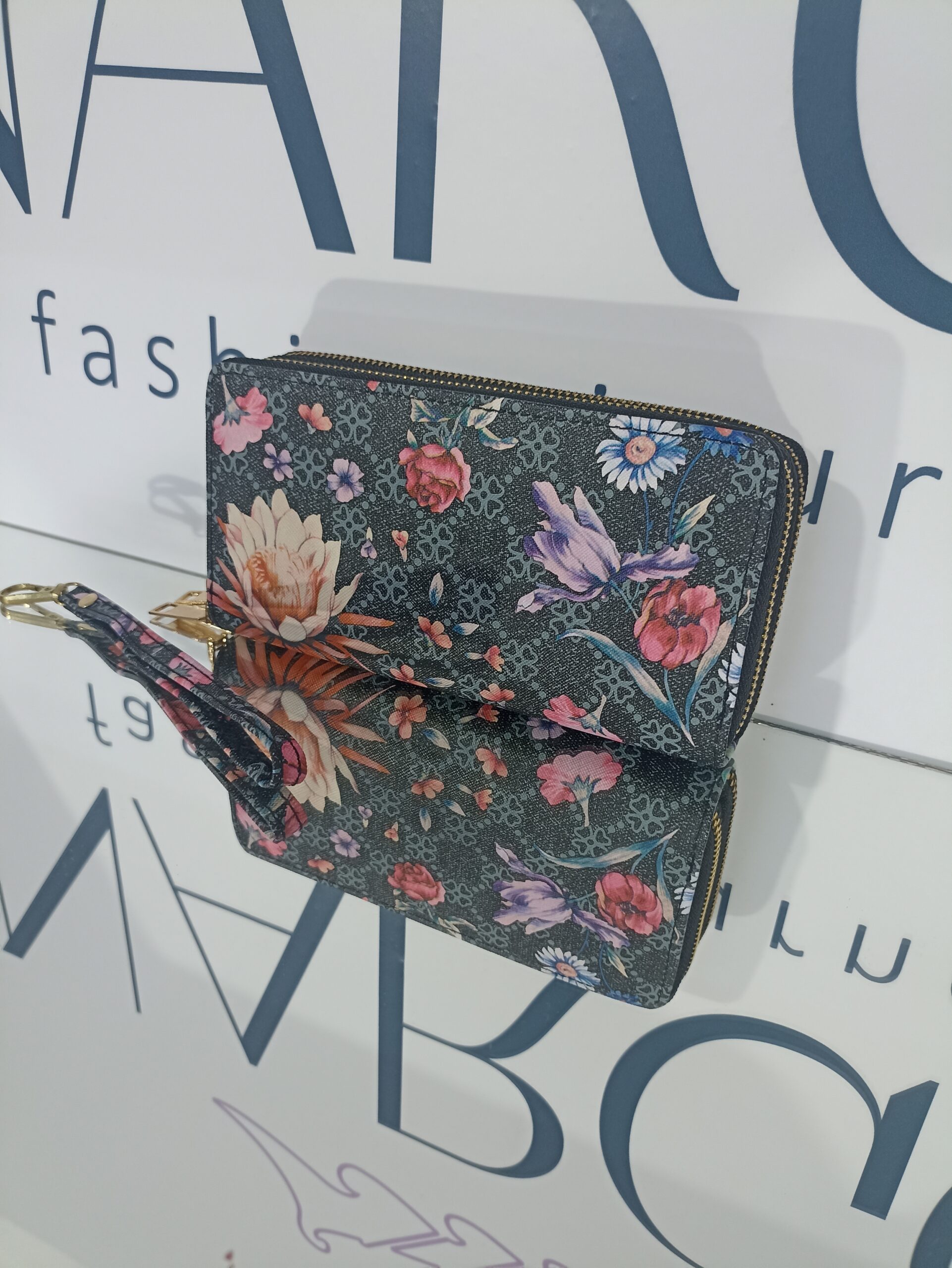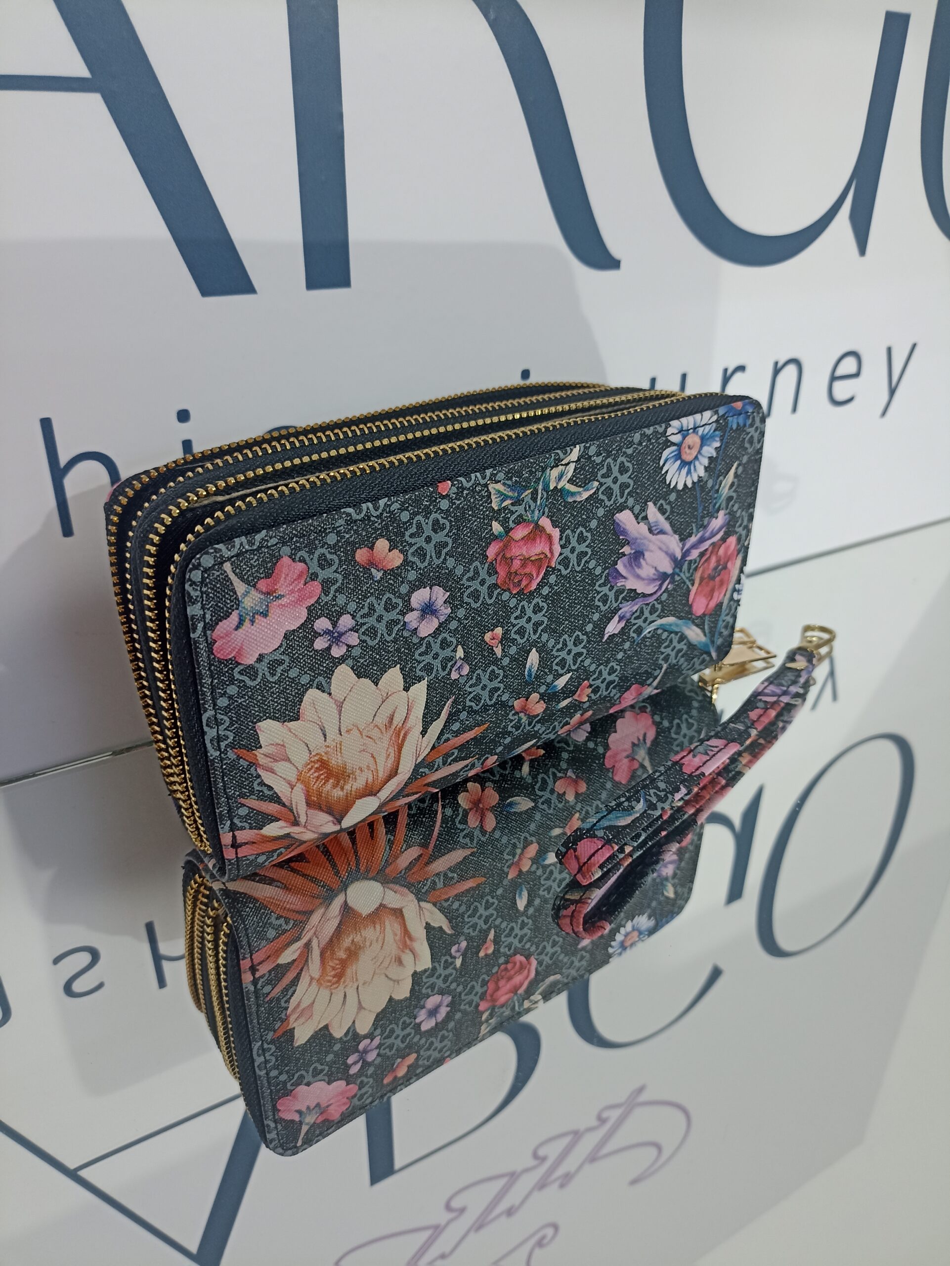 Γυναικείο πορτοφόλι floral με διπλό φερμουάρ.