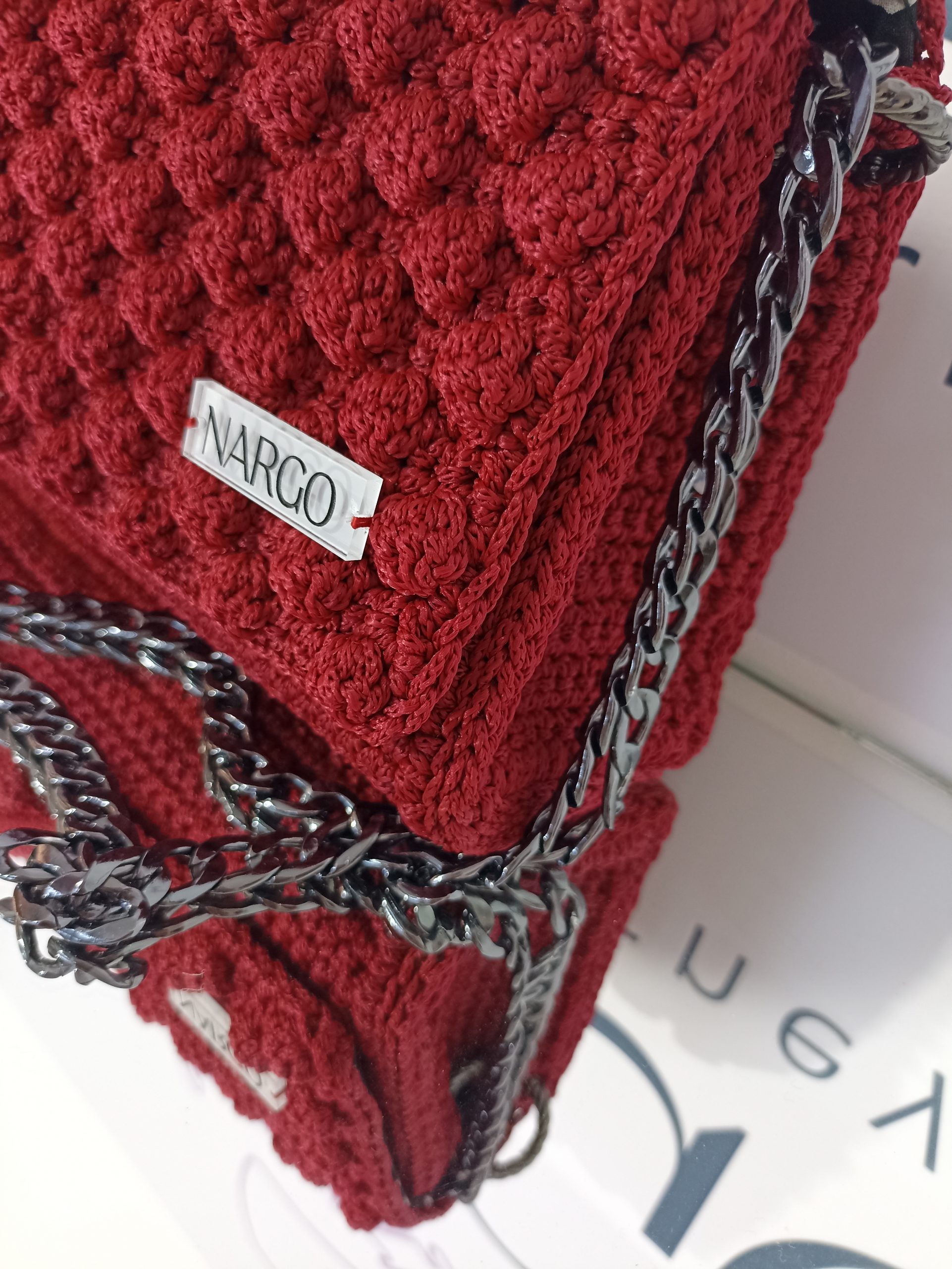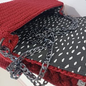 Πλεκτή κόκκινη τσάντα ώμου / χιαστί με διπλή μαύρη μεταλλική αλυσίδα!