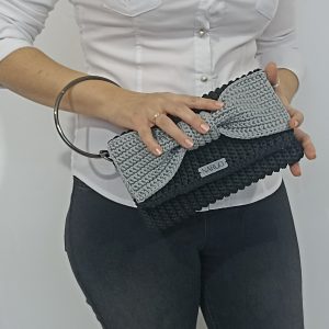 Πλεκτή τσάντα φάκελος με φιόγκο
