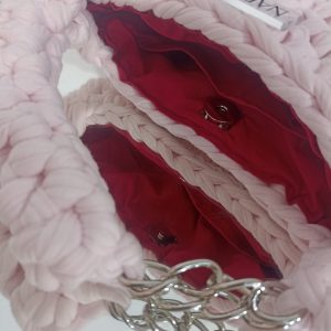 Χειροποίητη πλεκτή τσάντα χειρός σε ροζ απόχρωση ( ροζ απαλό ).