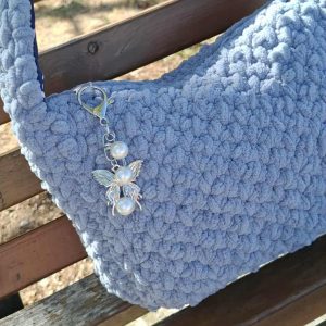 - Διακοσμητικό αποσπώμενο μπρελόκ πεταλούδα με πέρλες σε ασημί απόχρωση. (Μέσα στην τσάντα θα βρείτε και τον κρίκο του μπρελόκ για να το χρησιμοποιήσετε όπως σας αρέσει, είτε σε τσάντες είτε στα κλειδιά σας).