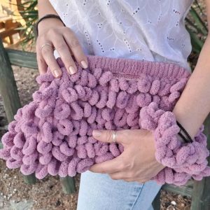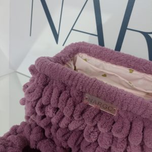 Κατασκευασμένη από μαλακό, χνουδωτό νήμα puffy εξαιρετικής ποιότητας σε μωβ απόχρωση (dusty purple), και μεταλλικό κρυφό κούμπωμα 25 εκατοστών.