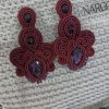 Χειροποίητα κόκκινα σκουλαρίκια σε σχήμα λουλουδιού κατασκευασμένα με την τεχνική soutache (σουτάζ).