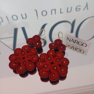 Από μεταξωτό κορδόνι σουτάζ σε κόκκινες αποχρώσεις, μικρές χάντρες και υποαλλεργικό ατσάλι.