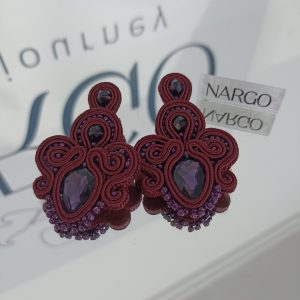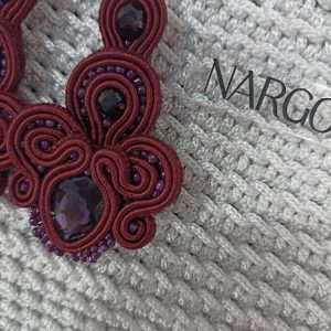 Χειροποίητα μπορντό σκουλαρίκια κατασκευασμένα με την τεχνική soutache (σουτάζ).