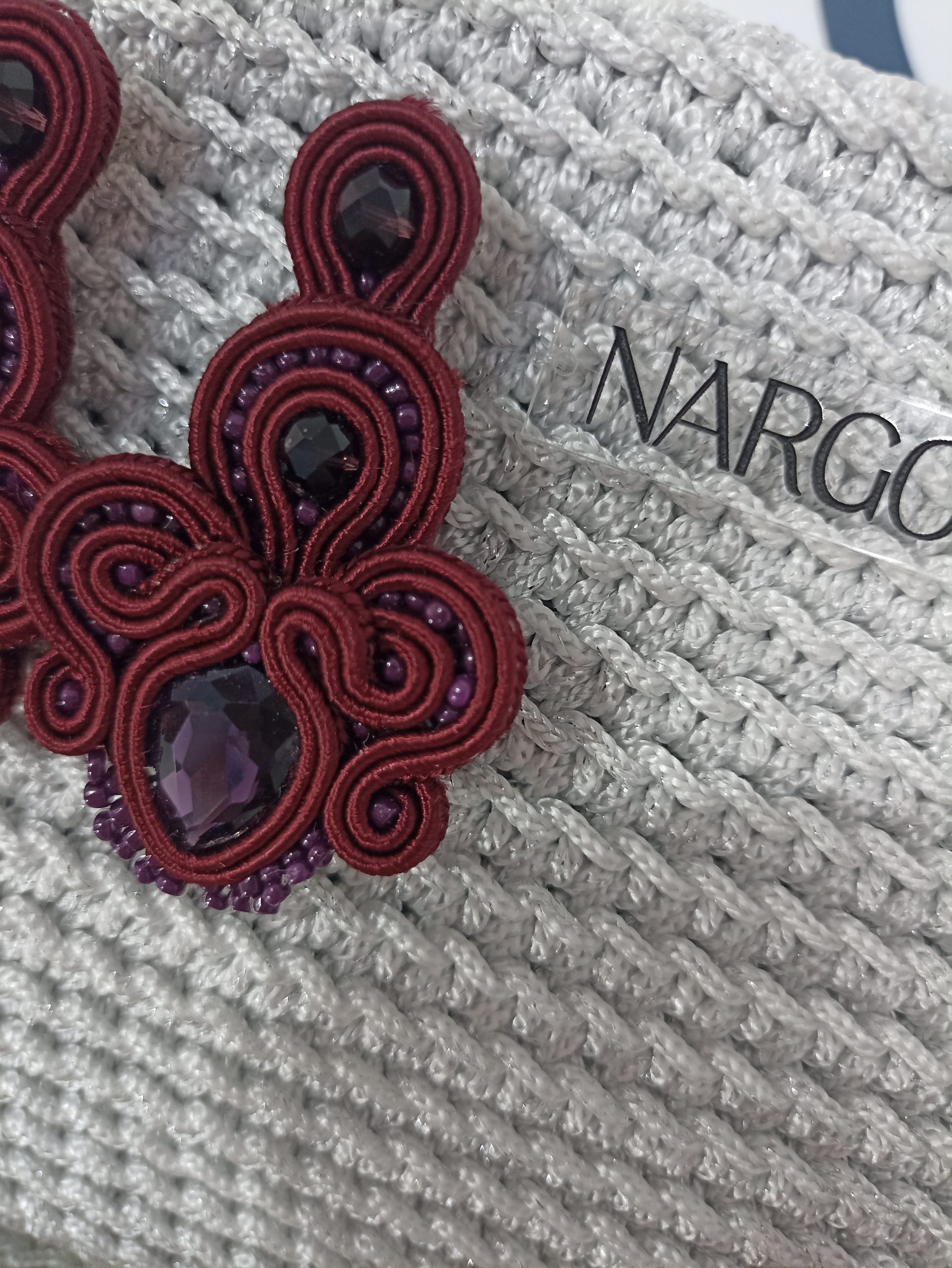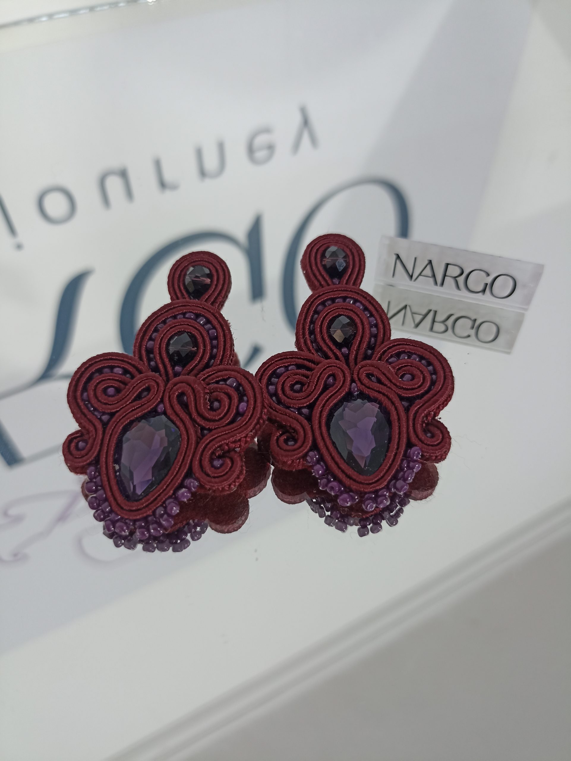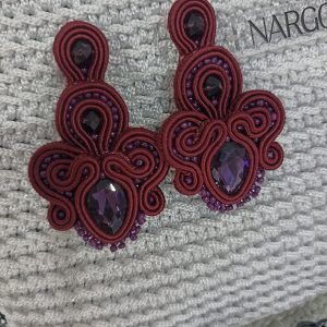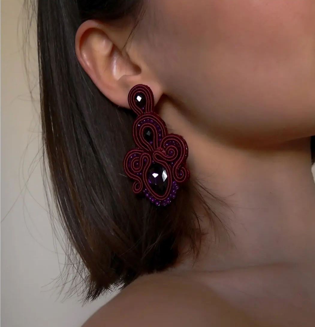 Χειροποίητα μπορντό σκουλαρίκια κατασκευασμένα με την τεχνική soutache (σουτάζ).