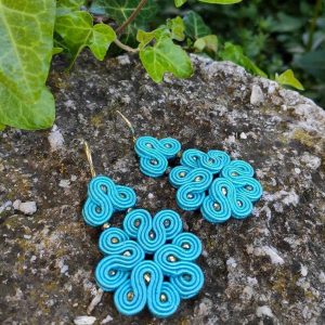 Χειροποίητα σκουλαρίκια σε σχήμα λουλουδιού κατασκευασμένα με την τεχνική soutache (σουτάζ).
