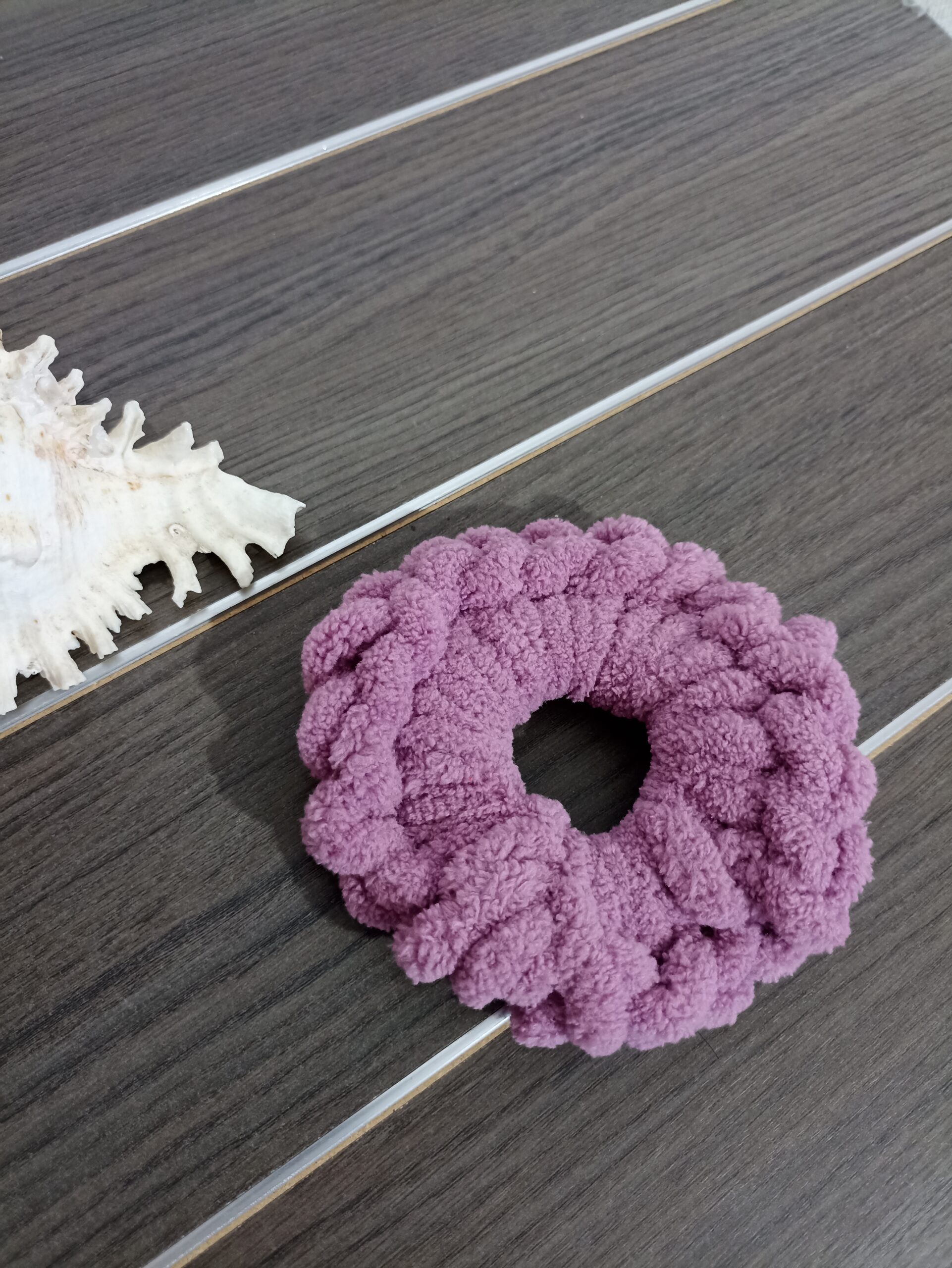 Πλεκτό puffy λαστιχάκι μαλλιών (scrunchie) – Μωβ